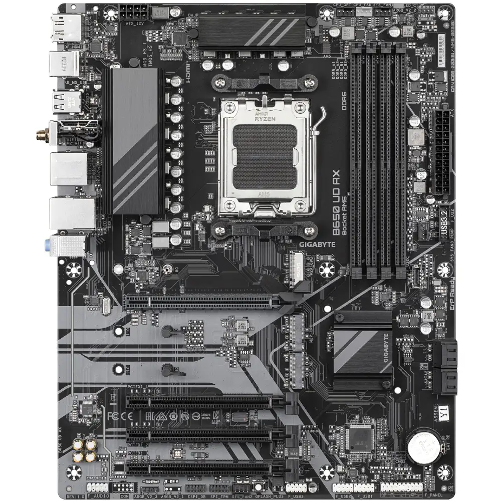 Материнська плата GIGABYTE B650 (B650_UD_AX) оснащена вбудованими Wi-Fi та Bluetooth модулями, що забезпечують гнучкість у підключенні бездротових пристроїв та мереж. UEFI BIOS дозволяє легко та зручно налаштовувати систему, забезпечуючи користувачам простоту управління.