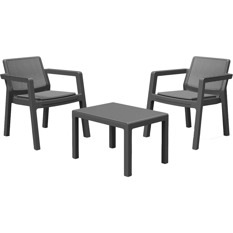 Створений з високоякісного пластику, набір забезпечує довговічність та стійкість до зовнішніх впливів. Матеріал каркасу та стільниці виготовлений з пластику, що робить меблі легкими, але міцними. Це особливо важливо для вуличних меблів, які піддаються впливу різноманітних погодних умов.
