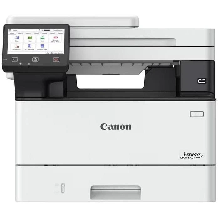 Canon I-Sensys MF463DW II оснащено кольоровим сенсорним дисплеєм діагоналлю 12.7 см, що забезпечує інтуїтивно зрозуміле управління. Завдяки підтримці комунікацій USB 2.0 тип B, Ethernet 10/100/1000baseTX та Wi-Fi, пристрій легко інтегрується в будь-яку мережу. Підтримка операційних систем Chrome OS, Mac OS та Windows робить його універсальним рішенням для різних користувачів.