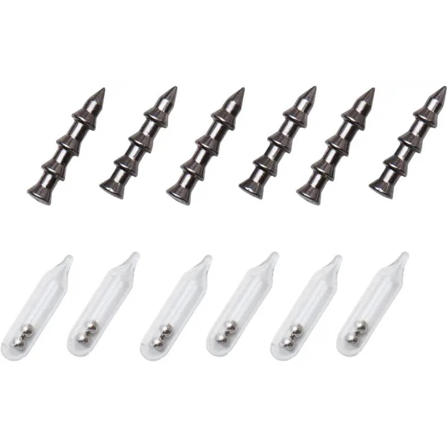 Цей набір складається з 12 елементів, які включають 6 скляних шумових капсул та 6 вольфрамових вантажів масою 1,9 г кожен. Шумові капсули створюють додатковий звуковий ефект, що привертає увагу риби, збільшуючи ймовірність улову. Використання вольфраму в конструкції вантажів забезпечує високу щільність та компактність, що дозволяє зберігати оптимальну вагу та розміри для зручного використання.