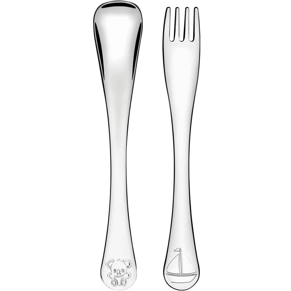 Цей набір включає два основних предмети: столову ложку та столову вилку, що ідеально підходять для маленьких ручок. Завдяки ергономічному дизайну, прибори зручно тримати, що сприяє розвитку навичок самостійного харчування у дітей. Ручки також виготовлені з нержавіючої сталі, що забезпечує міцність і стійкість до зносу.