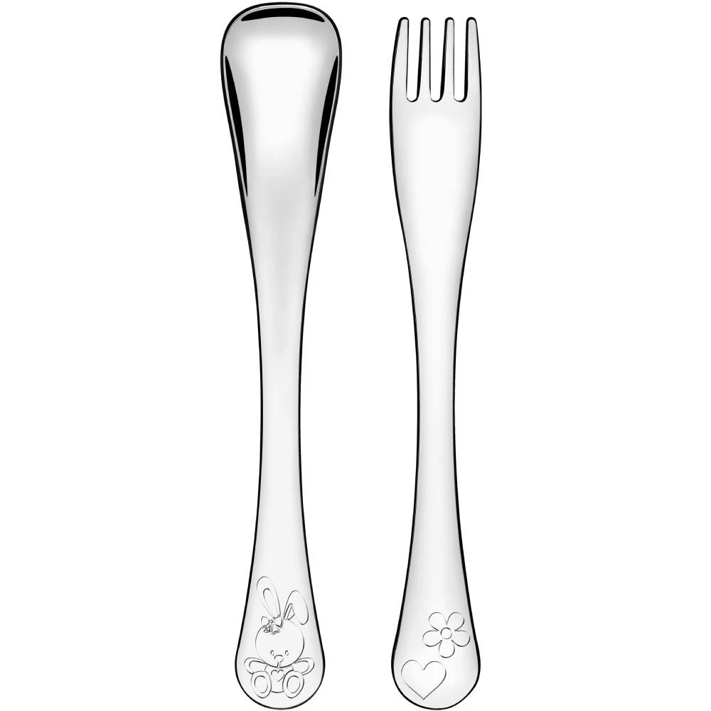 Цей набір включає два основні предмети: столову ложку та десертну вилку. Столова ложка ідеально підходить для перших самостійних спроб малюків насолоджуватися обідом, тоді як десертна вилка стане в нагоді для легких закусок та десертів. Ергономічний дизайн ручок забезпечує комфортне захоплення, що особливо важливо для маленьких дитячих рук. Крім того, ніжний рожевий колір додає привабливості та робить прийом їжі ще більш цікавим для дітей.