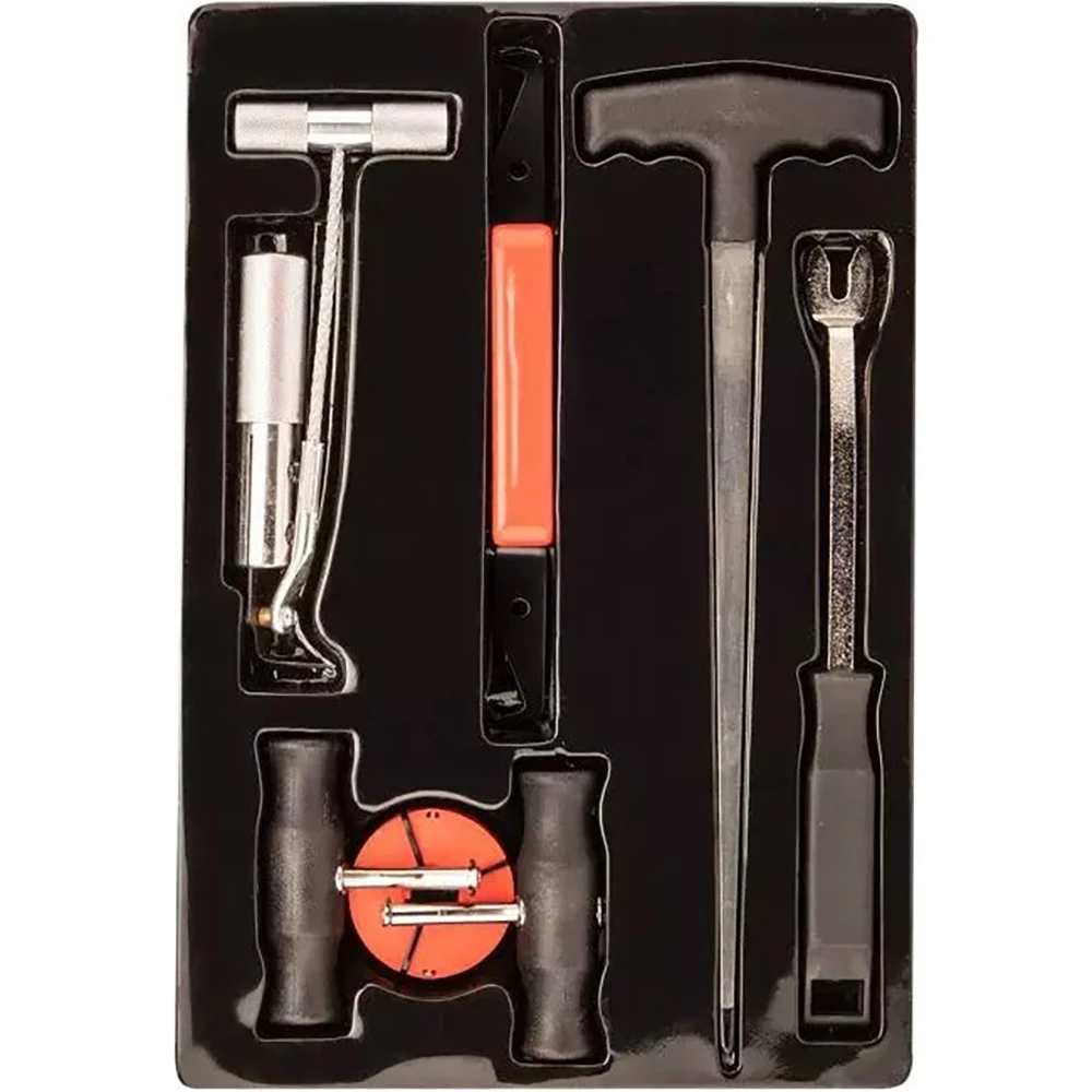Цей набір належить до категорії гаражного обладнання, що підкреслює його професійний рівень. Комплектація включає 7 спеціалізованих інструментів, які стануть незамінними помічниками при демонтажі скла. Кожен елемент набору виготовлений з високоякісних матеріалів, що гарантує тривалий термін служби та надійність у використанні.