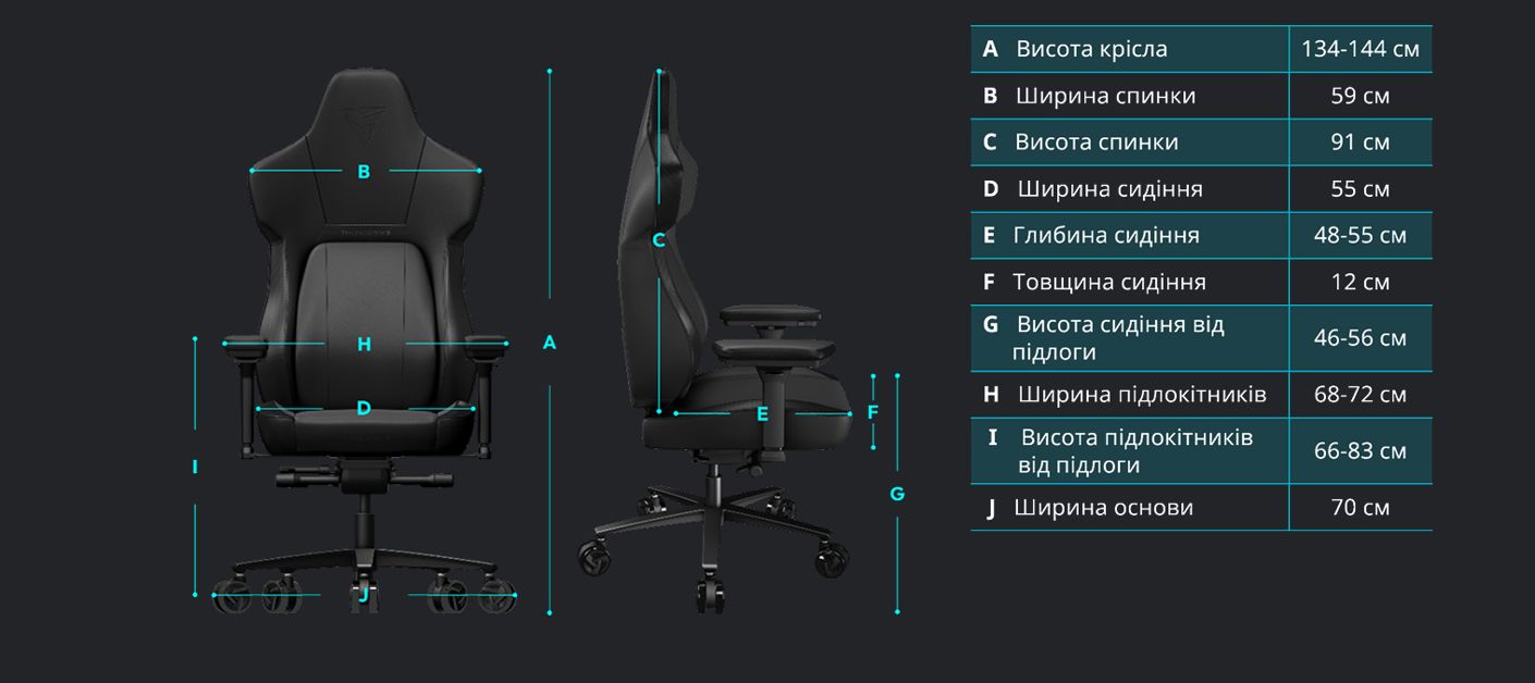 висота підлокітників;