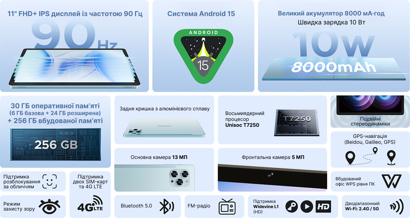 Вбудовану пам'ять 256 ГБ можна розширити ще до 2 ТБ за допомогою microSD картки (купується додатково).