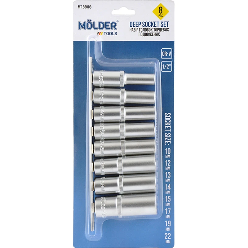 Набір торцевих головок MOLDER подовжені 1/2" 72T CR-V 10-22 мм 8 шт (MT68008)