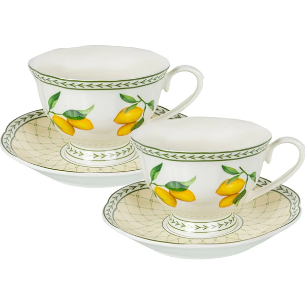 Комплектація сервізу включає дві чашки та два блюдця, що дозволяє створити атмосферу затишку та гармонії під час чаювання. Об'єм кожної чашки становить 0.22 літра, що є оптимальним для насолоди ароматним напоєм. Порцеляновий матеріал, з якого виготовлений сервіз, забезпечує довговічність та збереження тепла, дозволяючи насолоджуватися чаєм протягом тривалого часу.