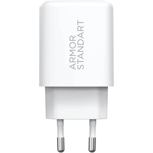 Мережевий зарядний пристрій ArmorStandart Poweraze 25W GaN Type-C + USB-A White — компактне та ефективне рішення для заряджання сучасних смартфонів, планшетів та інших мобільних пристроїв. Завдяки використанню передової GaN-технології блок живлення працює стабільно та без перегріву, забезпечуючи високу енергоефективність у мінімальних розмірах. Підтримка адаптивного швидкого заряджання PPS дозволяє оптимально підлаштовувати вихідну потужність під конкретний пристрій, забезпечуючи безпечне та ефективне заряджання. USB-C здатний видавати до 25 Вт, USB-A — до 18 Вт, а при одночасному використанні обох портів енергія розподіляється для стабільної роботи обох пристроїв.