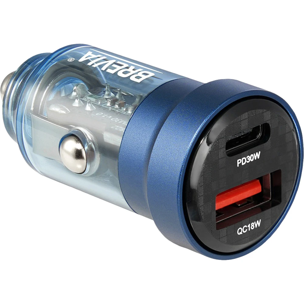 Автомобільний зарядний пристрій Brevia ePower DualCharge 30W 1xUSB-C+1xUSB-A Transparent Blue (46530CABL)