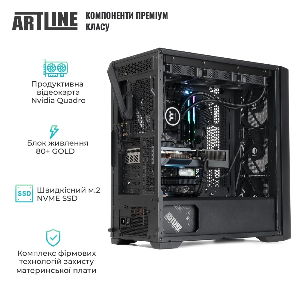 Комп'ютер ARTLINE WorkStation W96 Windows 11 Pro Black (W96v72Win) представляє собою ідеальне рішення для професійних завдань, які вимагають високої продуктивності та надійності. Ця робоча станція здатна задовольнити потреби навіть найвимогливіших користувачів завдяки передовій архітектурі та сучасним технологіям, які лежать в основі її конструкції.