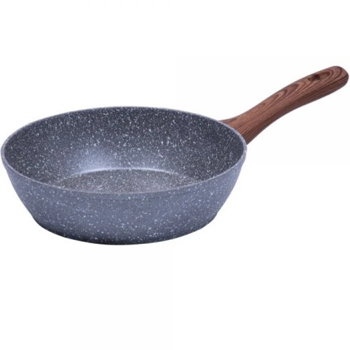 Сковорода виготовлена з високоякісного алюмінію, що забезпечує швидке і рівномірне нагрівання, завдяки чому їжа готується швидше, зберігаючи всі свої корисні властивості. Внутрішнє антипригарне покриття дозволяє використовувати мінімальну кількість олії, що робить страви не тільки смачними, але й корисними. Бакелітова ручка забезпечує зручність та безпеку використання, адже вона не нагрівається під час приготування.