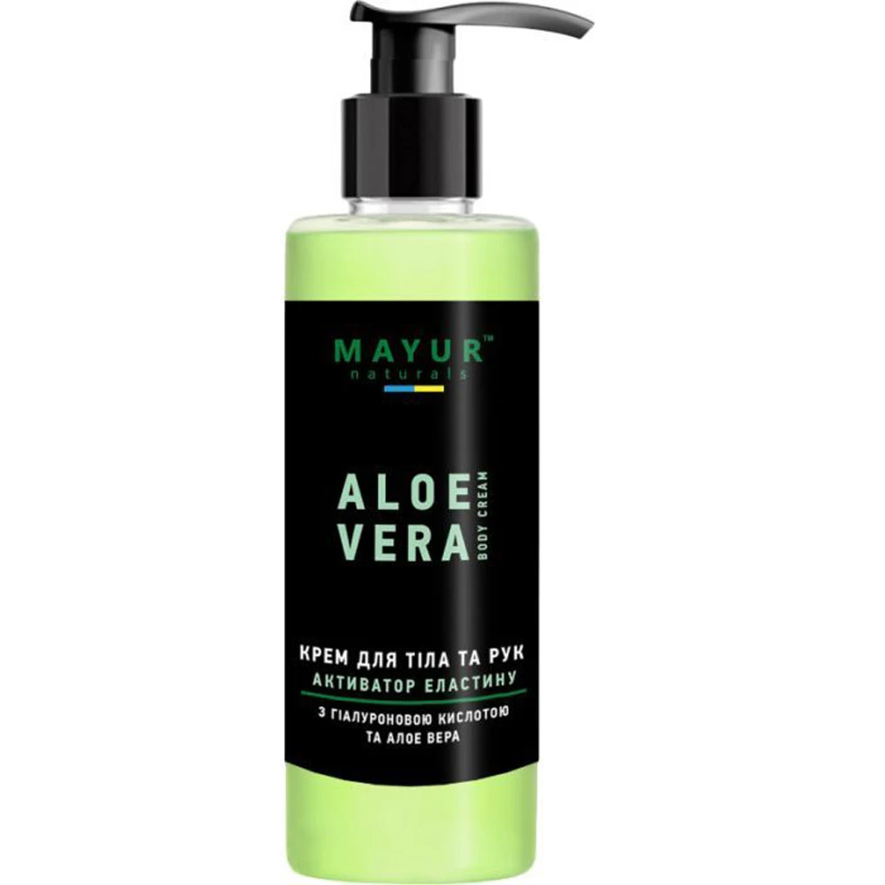 Крем для тіла MAYUR Активатор еластину відзначається своєю здатністю глибоко зволожувати та живити шкіру. Завдяки гелю алое віра, який є відомим природним зволожувачем, крем проникає в глибокі шари шкіри, надаючи їй свіжості та пружності. Алое віра також відомий своїми заспокійливими властивостями, що допомагає зменшити подразнення та почервоніння, роблячи шкіру м'якою та гладенькою.