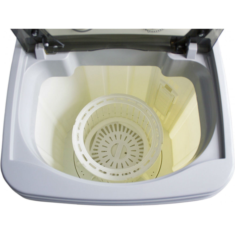 Машина має стильний сірий колір, що легко вписується у сучасний інтер'єр. Її компактні розміри з висотою 80 см, шириною 45 см та глибиною 40 см роблять цю модель ідеальною для помешкань з обмеженим простором. Загальна вага пральної машини становить лише 10 кг, що полегшує її транспортування та установку.