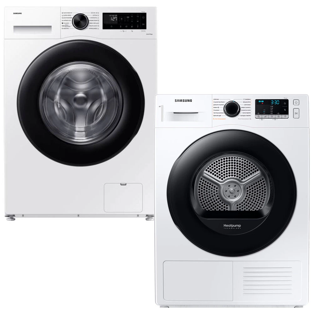 Комплект SAMSUNG з пральної та сушильної машин є бездоганним вибором для тих, хто цінує високу якість, ефективність та сучасні технології. З цими пристроями ваш дім стане ще комфортнішим, а догляд за одягом – простішим та приємнішим.