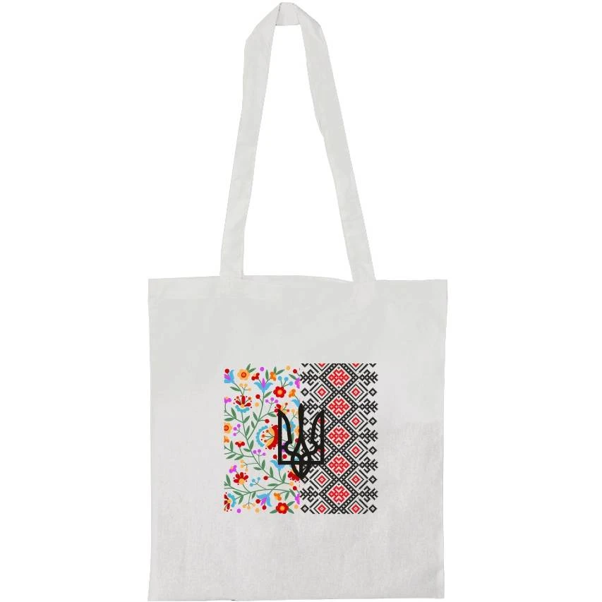 Сумка-шоппер SOFT ME Вишиванка орнамент квіти герб White (DTF30100101-08/303)