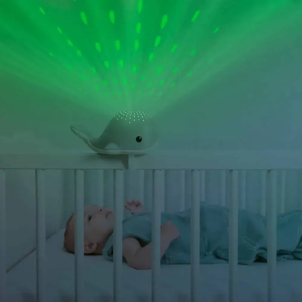 3 заспокійливі мелодії, 4 різних колірних режими (червоний, синій, зелений та мультиколір), автоматичне відключення, датчик плачу