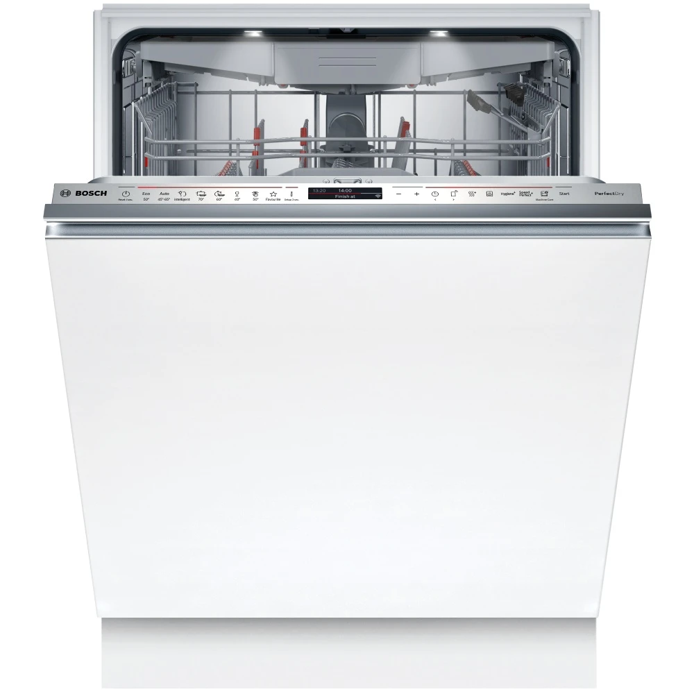 Посудомийна машина BOSCH SMV8YCX02E обладнана інверторним двигуном EcoSilence Drive, який працює тихо та економно. Завдяки Wi-Fi та функції керування зі смартфона, ви можете дистанційно керувати процесом миття, що робить цей пристрій надзвичайно зручним для сучасного користувача.
