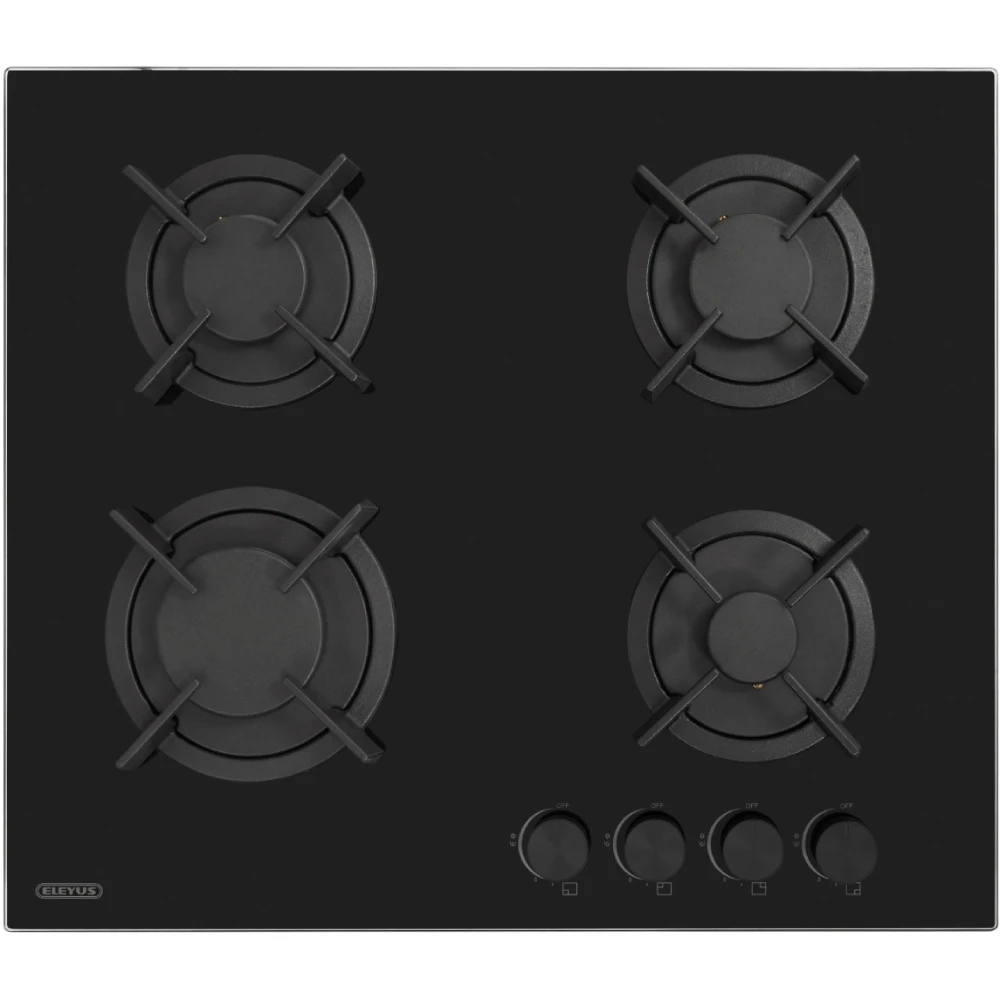 Варильна поверхня ELEYUS H0GBHG 60 BL CF оснащена чотирма газовими конфорками різної потужності, що дозволяє готувати кілька страв одночасно, ефективно використовуючи час і ресурси. Права задня та ліва задня конфорки мають потужність 1750 Вт і діаметр 75 мм, що ідеально підходить для середніх каструль та сковорідок. Права передня конфорка з потужністю 1000 Вт і діаметром 55 мм стане в нагоді для приготування легких страв, а ліва передня конфорка з потужністю 2400 Вт і діаметром 100 мм забезпечить швидке нагрівання для великих об'ємів їжі.