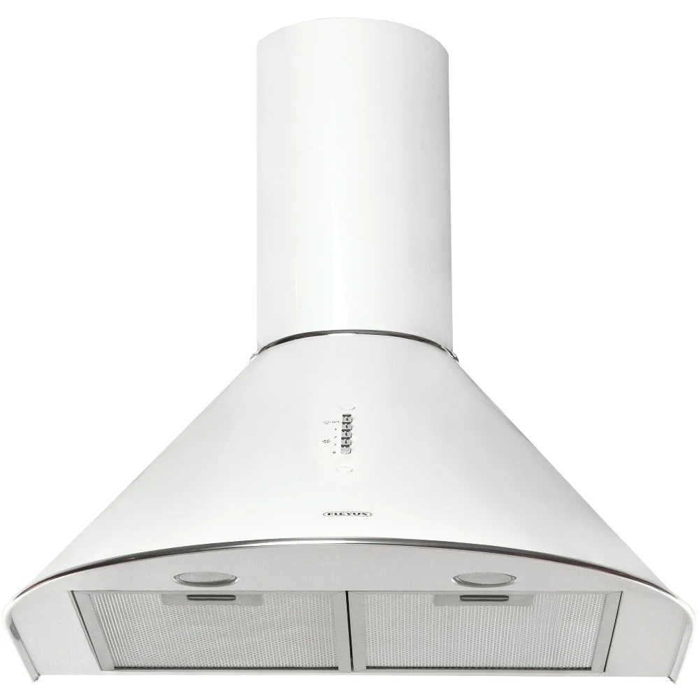 Витяжка оснащена кнопковим управлінням та кулісними перемикачами, що робить її зручною та інтуїтивно зрозумілою у використанні. Білий колір корпуса додає елегантності та гармонійно вписується в будь-який кухонний інтер'єр.